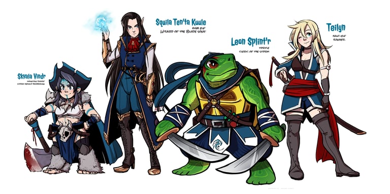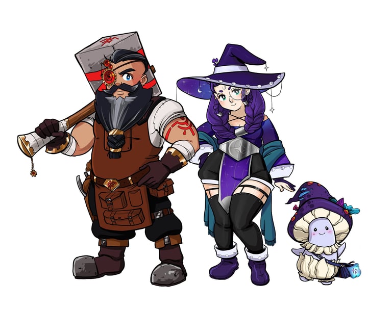 From tieflings to halflings, I love drawing Dungeons & Dragons characters in all their magical, nerdy glory. I create custom D&D/TTRPG character illustrations across a wide range of races and classes. Whether you’re looking for a simple character design, a headshot icon, or a fully posed scene with a detailed background, I offer D&D commissions for solo characters or entire adventuring parties