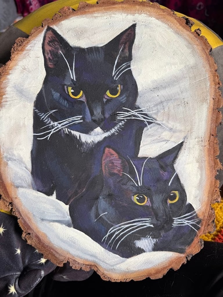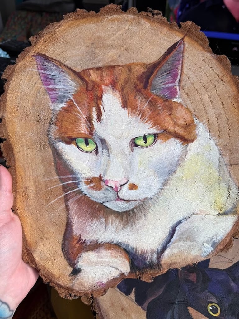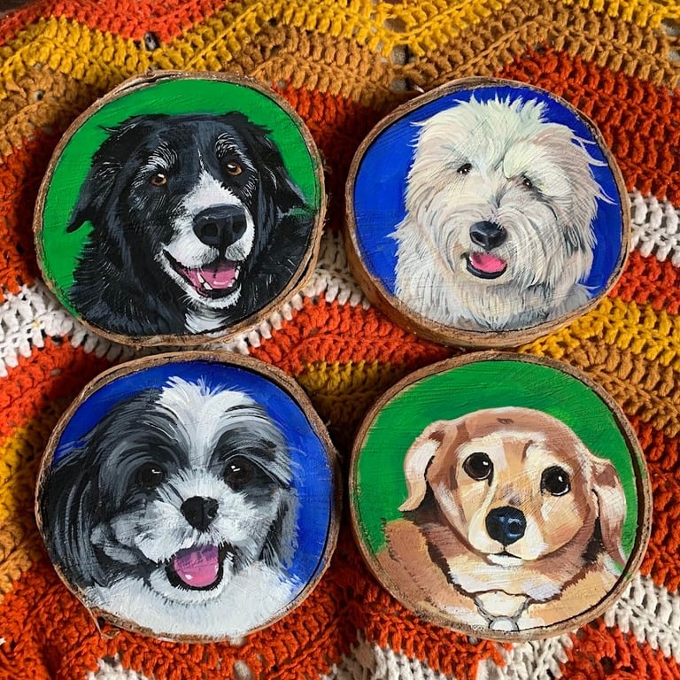 I create realistic digital portraits with a strong focus on likeness and expression, capturing people as they truly are. I also love painting custom pet portraits, including hand-painted portraits of cats and dogs on wood slices. Whether you’re looking for a digital portrait or a one-of-a-kind pet keepsake, I love taking on portrait commissions!